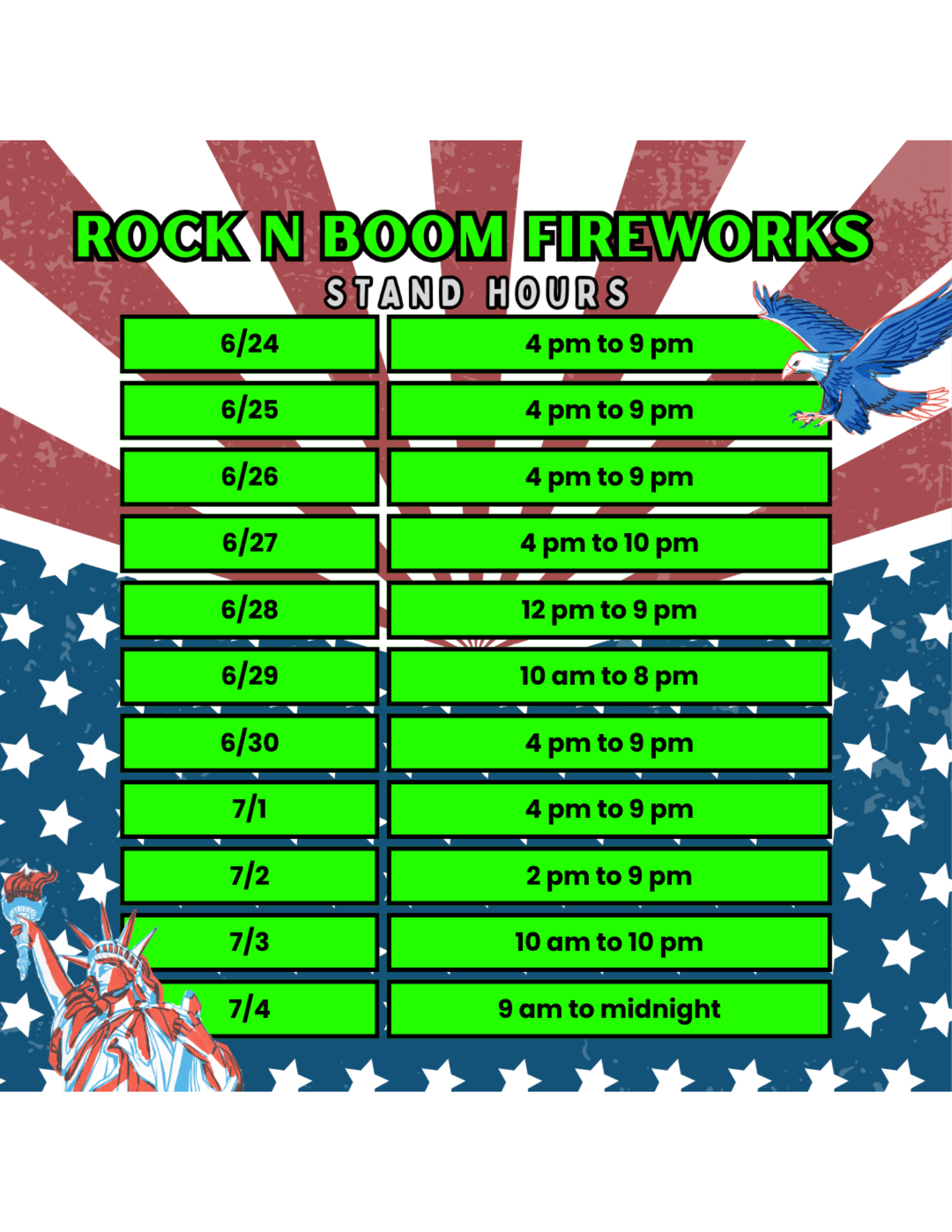 At Rock N Boom Fireworks, we are committed to providing our customers with the best products and customer service possible. We have TV’s and product scanning capabilities at all our stands so customers can see a video of products before they buy. And if you ever have any problems with your fireworks, feel free to return or exchange them.